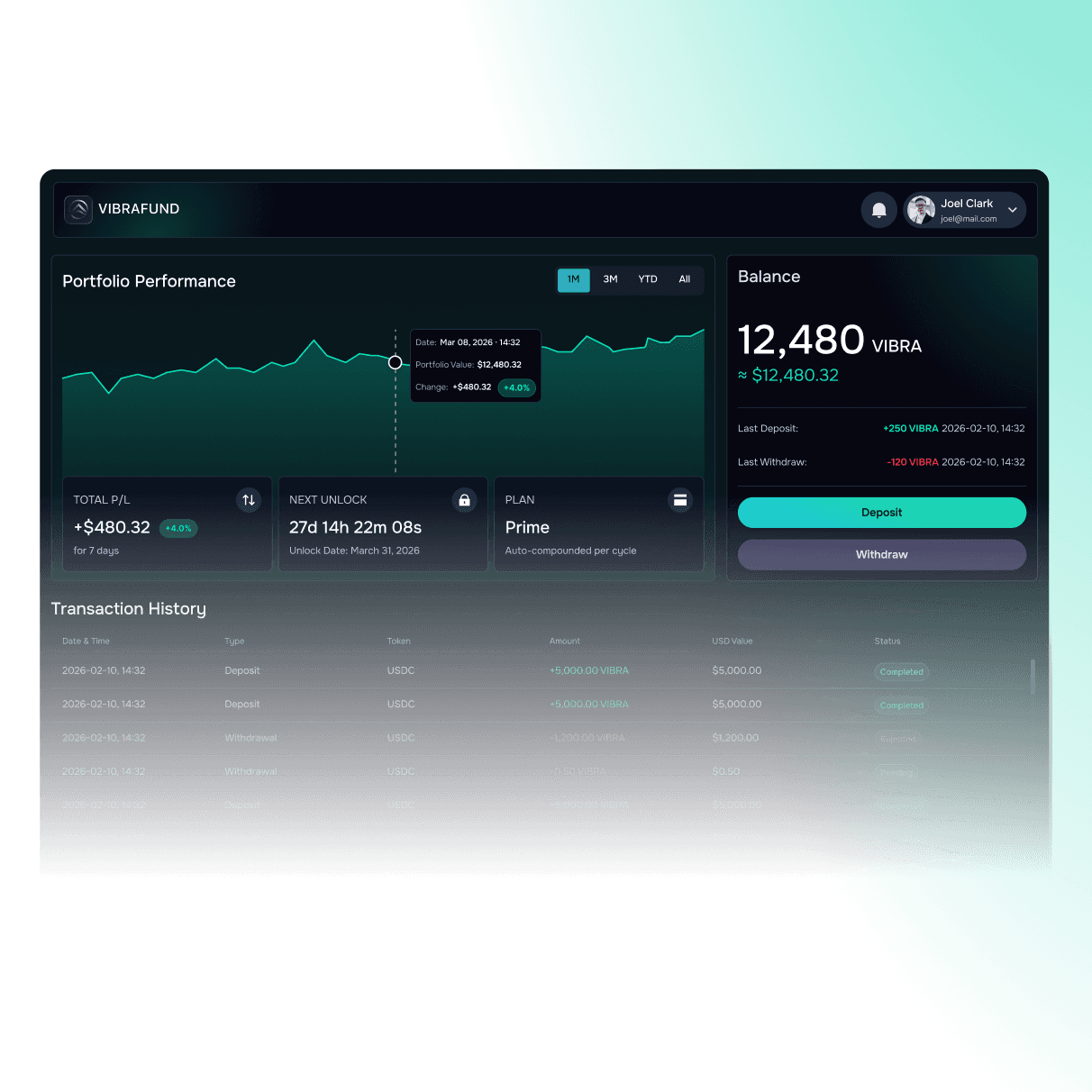 VibraFund is a fully tokenized hedge fund platform providing access to hedge fund–style strategies for both individuals and institutions. Unlike traditional hedge funds requiring $100,000+ minimums, VibraFund allows participation starting from $50. All participation terms are executed on-chain through smart contracts for transparency and automation.